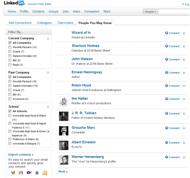 Pubblicato il 1 aprile 2011, in Cose mie, società con tag linkedin, Pesce d'Aprile. Aggiungi il permalink ai segnalibri. Lascia un commento.