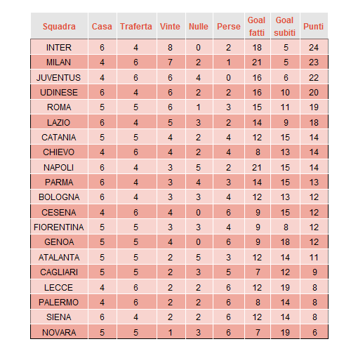 Nella corsa scudetto il Milan rallenta vistosamente ma rimane saldamente in testa, Juve stabile, in risalita netta l’Inter, anche se ben lontana dalle due capolista. Lo scenario e’ simile anche per la corsa per la Champions e per l’Europa League, dove pero’ la lotta si fa più serrata.