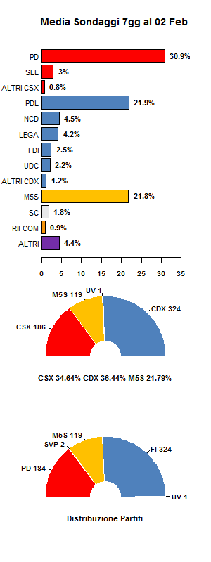 Media sondaggi al 2 Febbraio