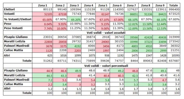 Ergo l’andamento dell’affluenza in Zona 7 e 9, unitamente a quello in zona 1,2 e 3 potrà darci un’indicazione sul risultato finale.