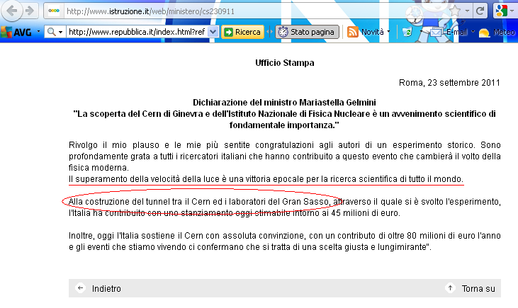Questo e’ il comunicato del Ministero della’Universita’ e della Ricerca. Parole della Gelmini.