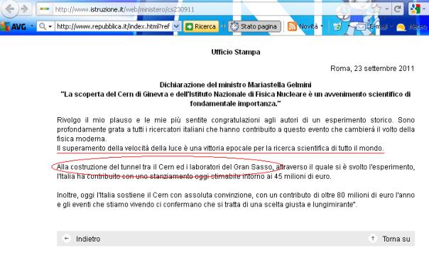 Ovviamente il superamento della velocita’ della luce e’ un grande successo della scienza.