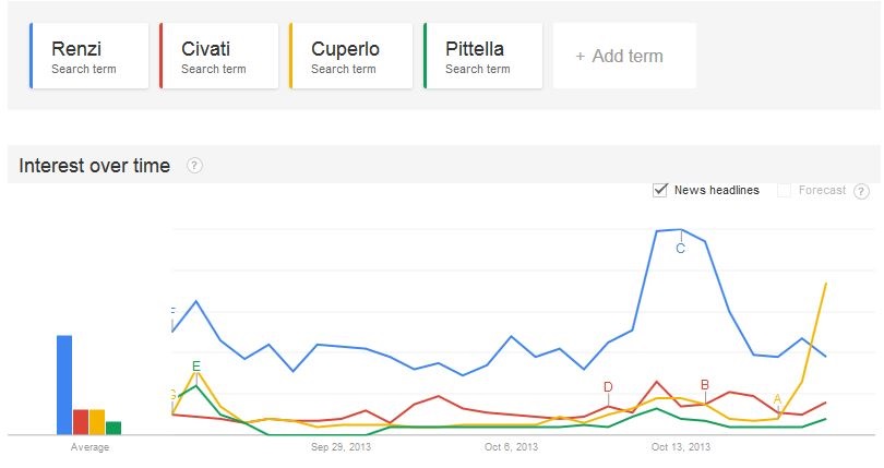 Cosa sarà successo a Cuperlo in questo weekend per vedere un boost tale in Google Trends? Ah saperlo
